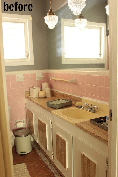 What do you think? What would be at the top of your to do list for this space? Do the little upcycling ideas help deter the eye from the pink tile for now?