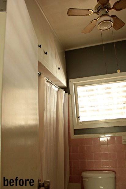 *remove the cabinets above the shower – right now that space is really functional storage, but I think with that opened up the whole room would look so much bigger.