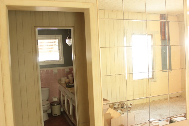 Like I said, we’re tossing around other, more major ideas too, like moving the entrance door to the wall by the mirror tiles and relocating the linen closet (that is directly behind the door on the left beside the tub) and even removing the tub altogether and tiling a shower to create extra room for the master bath/closet space behind it.