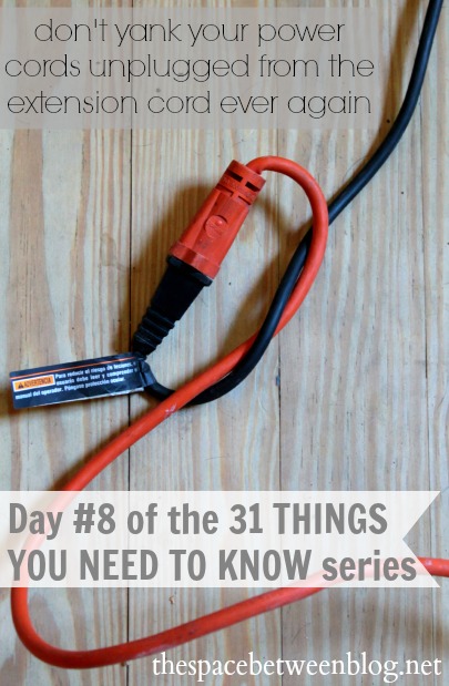Thanks to my dad I’ve been tying a knot when I plug in my tools into an extension cord for years and now my yanking just pulls the knot tighter. 🙂