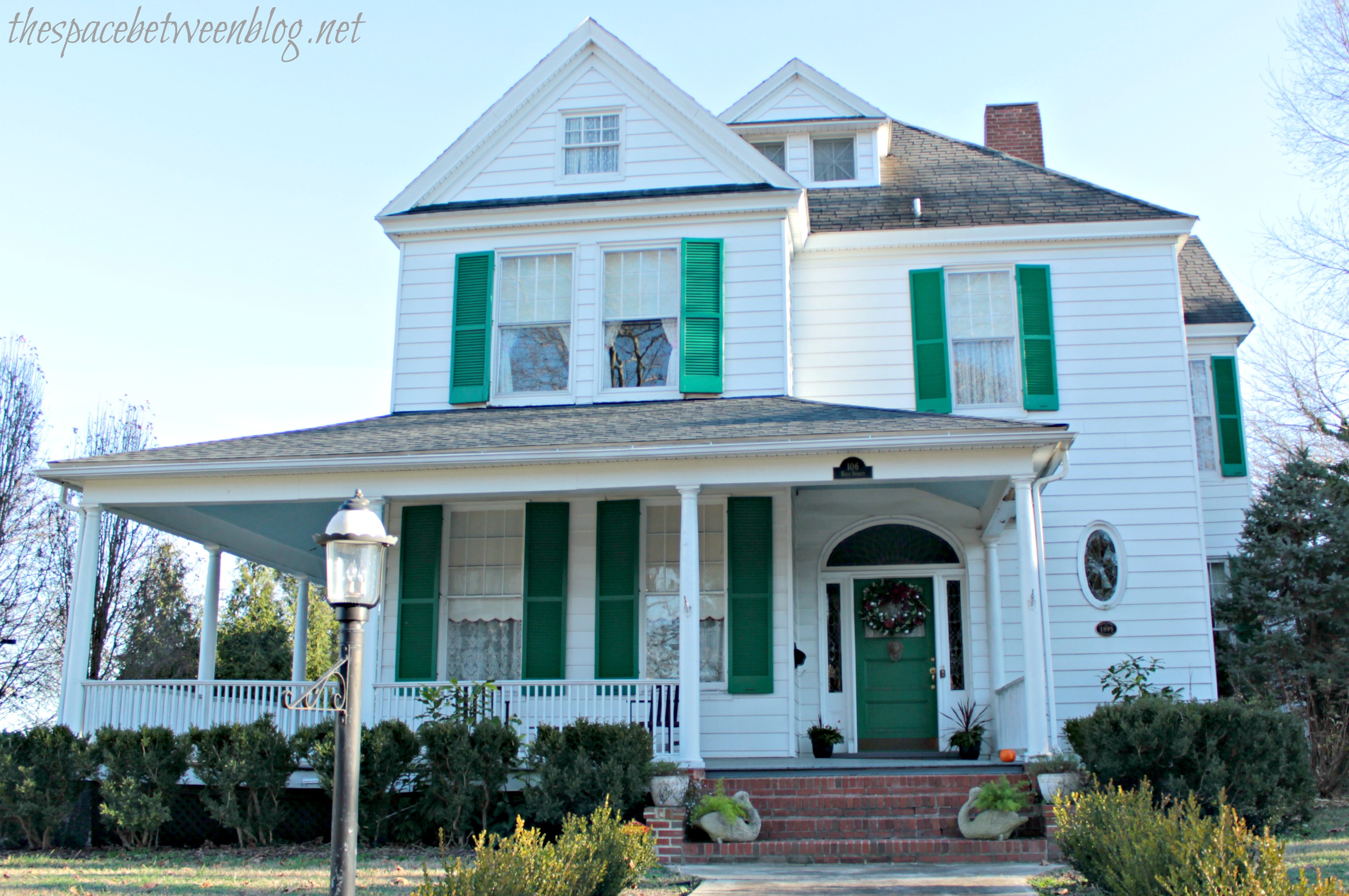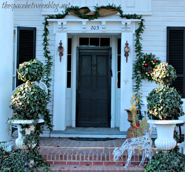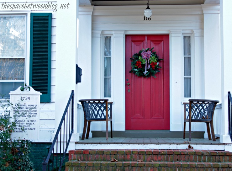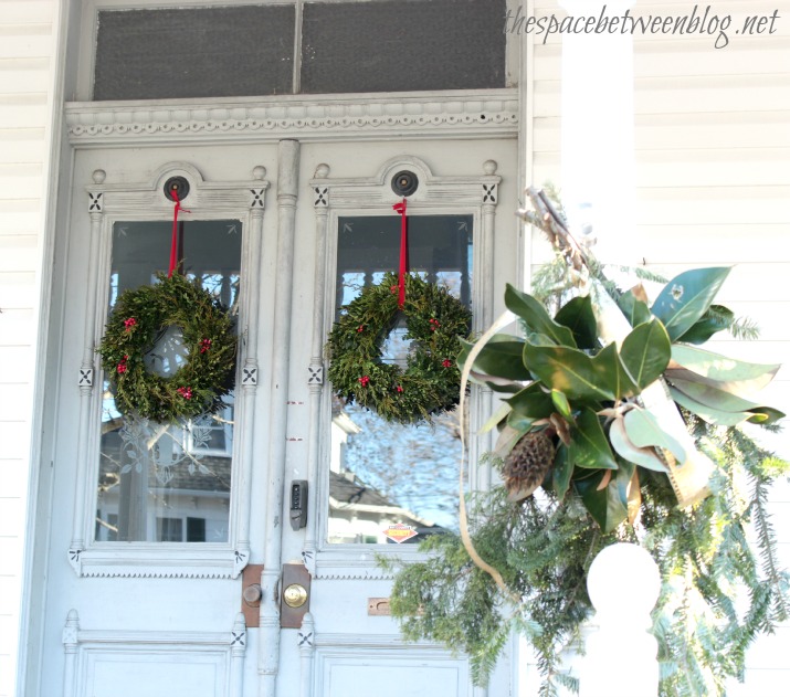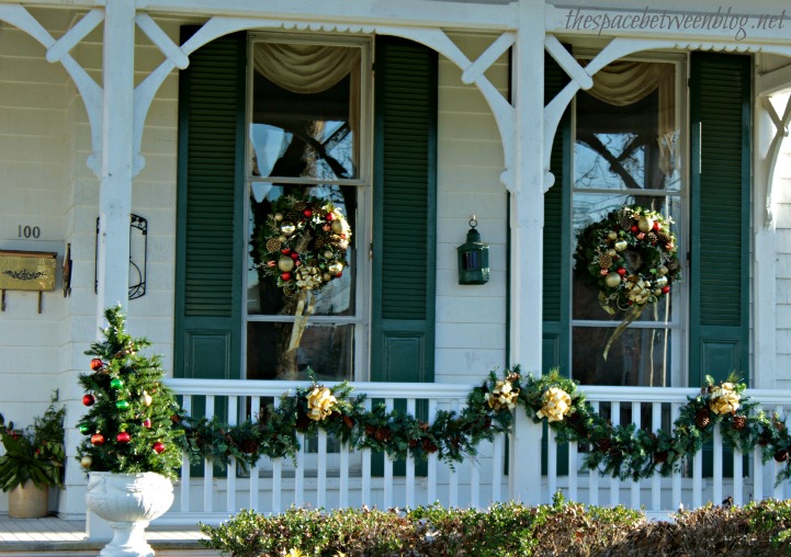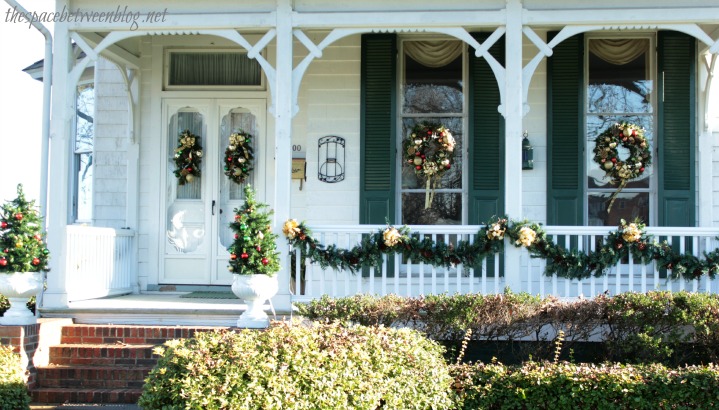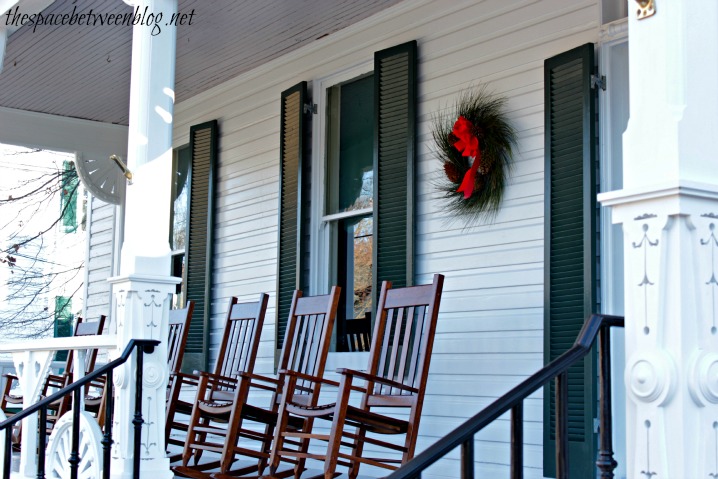 Now, I know it’s hard to see beyond all of the tree branches, but I think this is my favorite wreath … but it might just be all of the rocking chairs on the porch that make me love it so much.