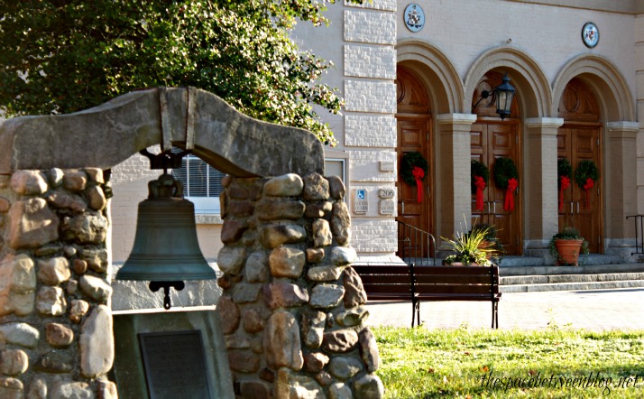 Flanking this end of the quaint little street is the court house …