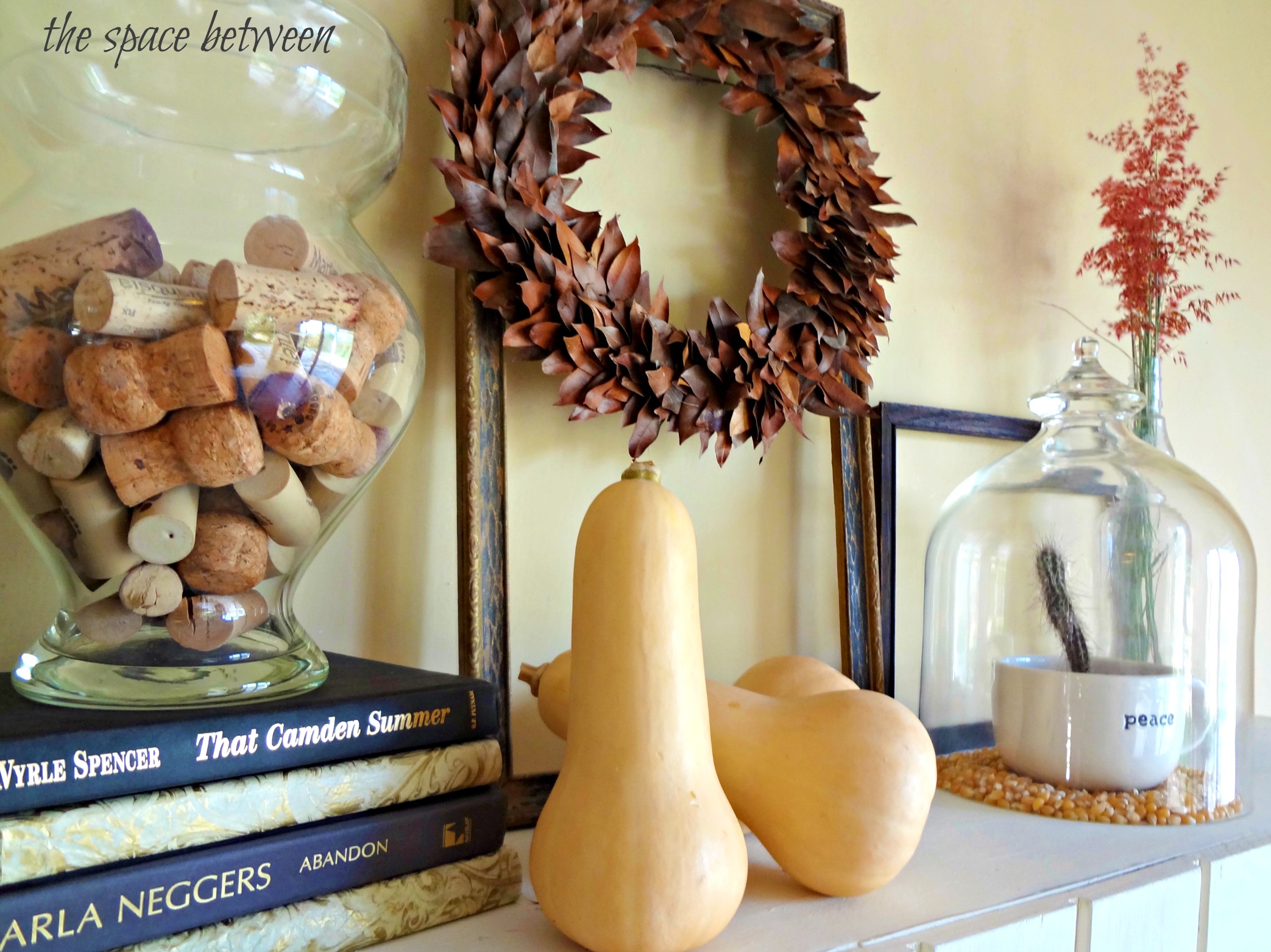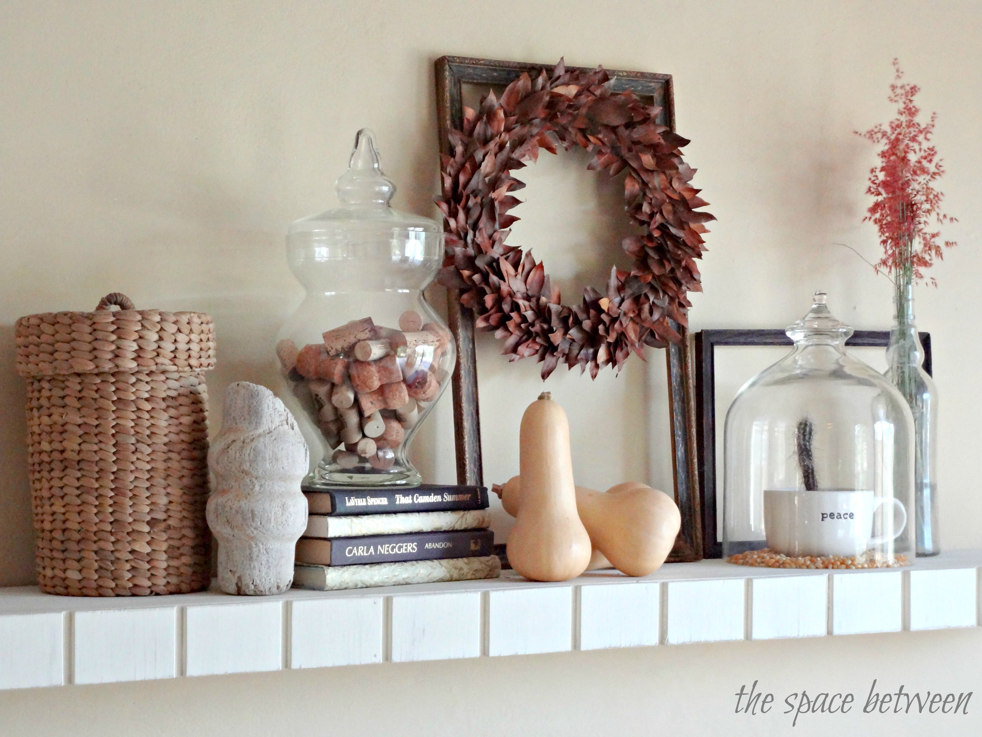 And, since I’m one to follow my dreams, and I just happen to have a new shelf ready for some new decorations, and I wasn’t blogging last fall … I present to you now a little fall decor. 🙂
