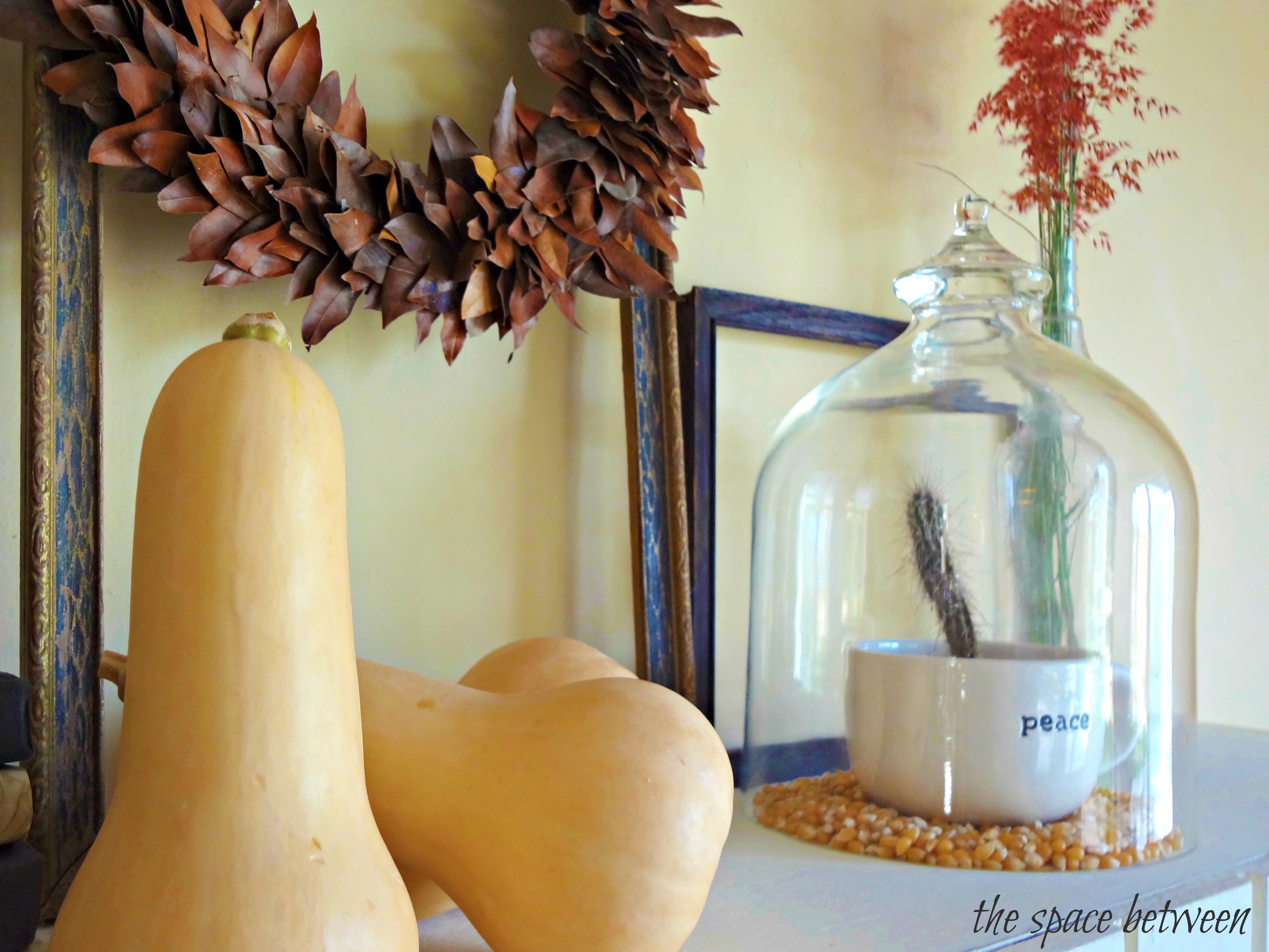Karah, I read your post a couple of days ago {working on my autumn display too} but saw you little cloche with the cactus on A stroll thru life link party and had to come over and comment. The popcorn is my favorite part! How would ever think of using popcorn as a “base” for a cloche? I guess you would! Love it all.