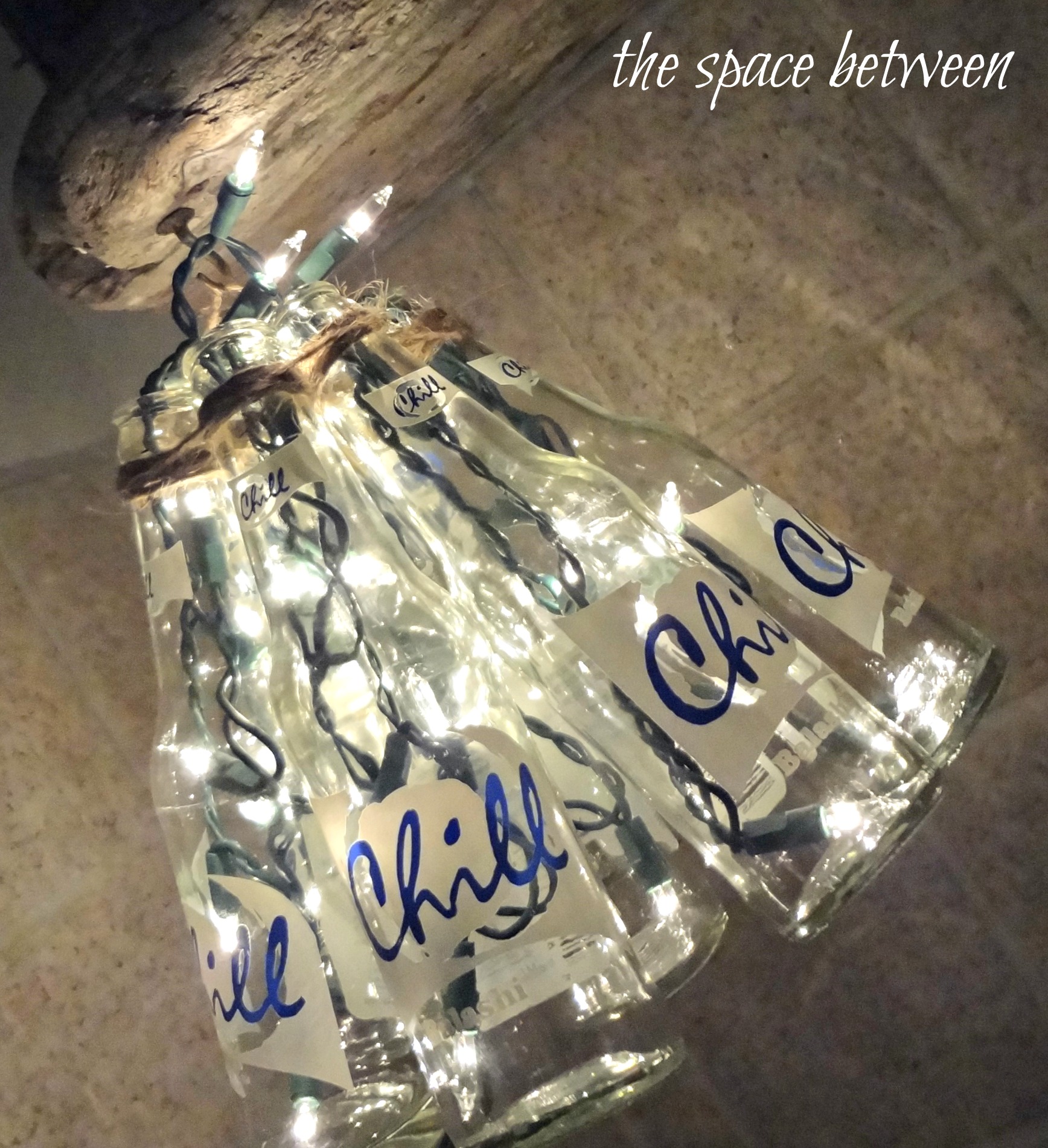 But, once logistics dictated that my fun new bottle chandelier wasn’t going to be swaying in the breeze above our bed, she needed a new home.