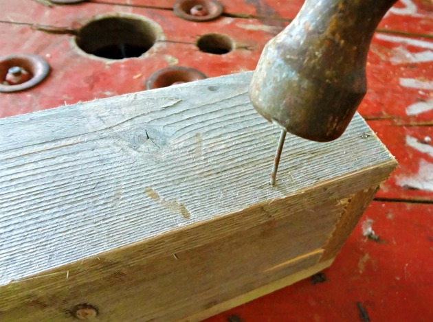 Then I moved into my favorite construction spot, the coffee table, because it is stinkin’ hot outside at 2 in the afternoon, and just hammered in enough nails to keep it all together.