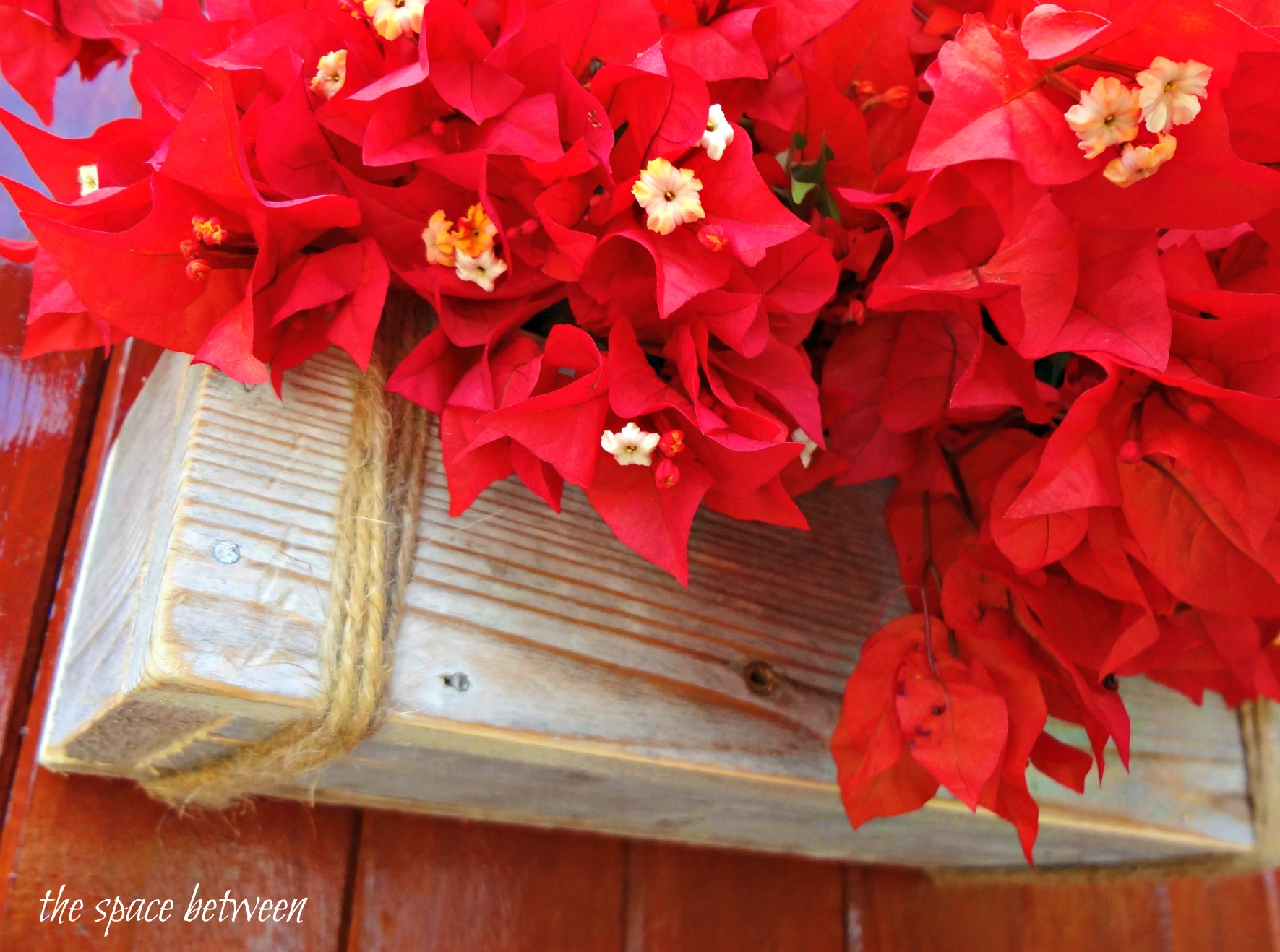 The red flowers against the red door look awesome. Why don’t I have any pallets with wood that close together??? Mine all have big spaces in between… Love your project, so cute!!! Love that door colour, too.