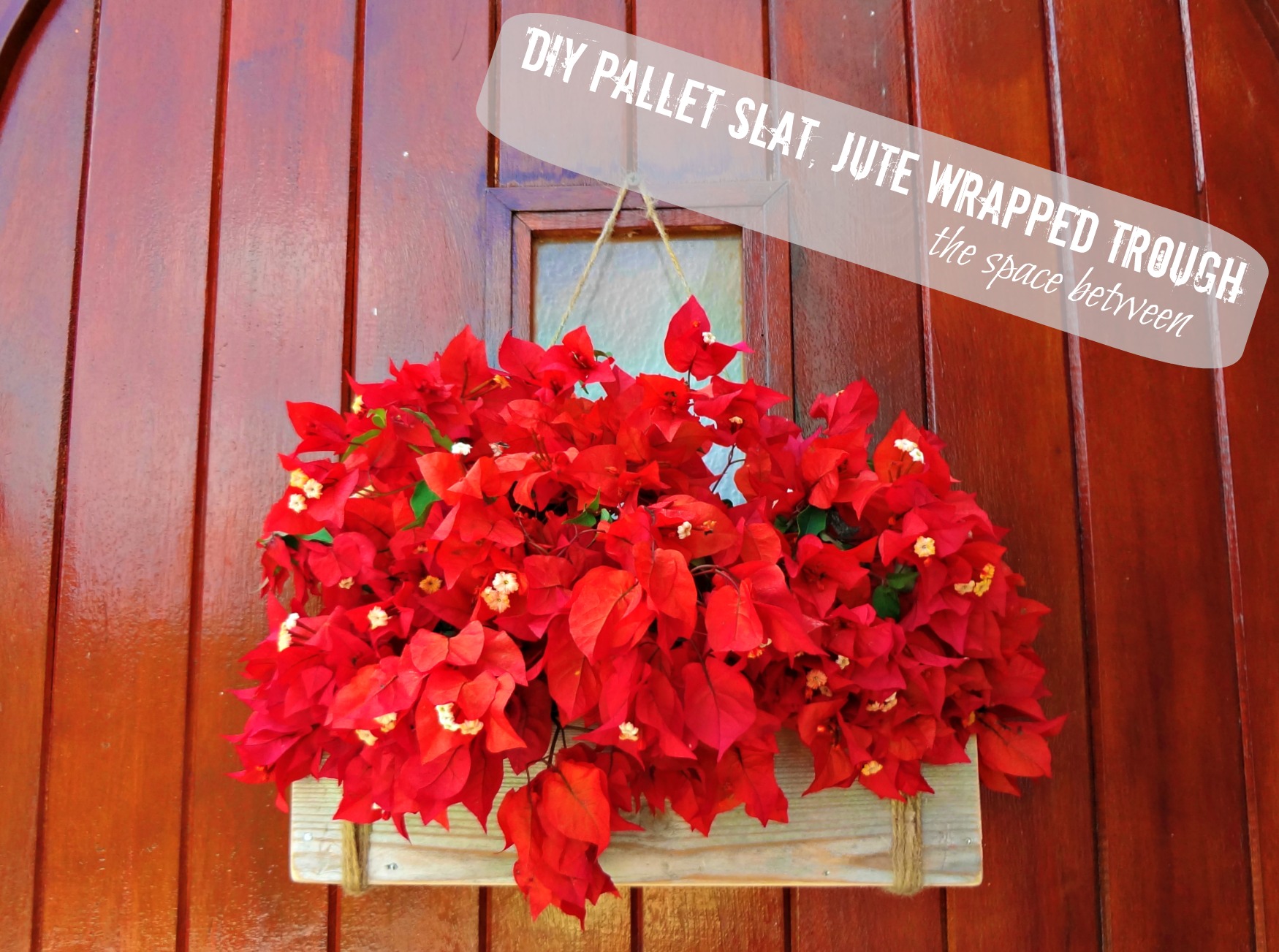 Then I wrapped some jute around both ends of the trough leaving enough of a length to hang it from the screw in our door. And Stop!