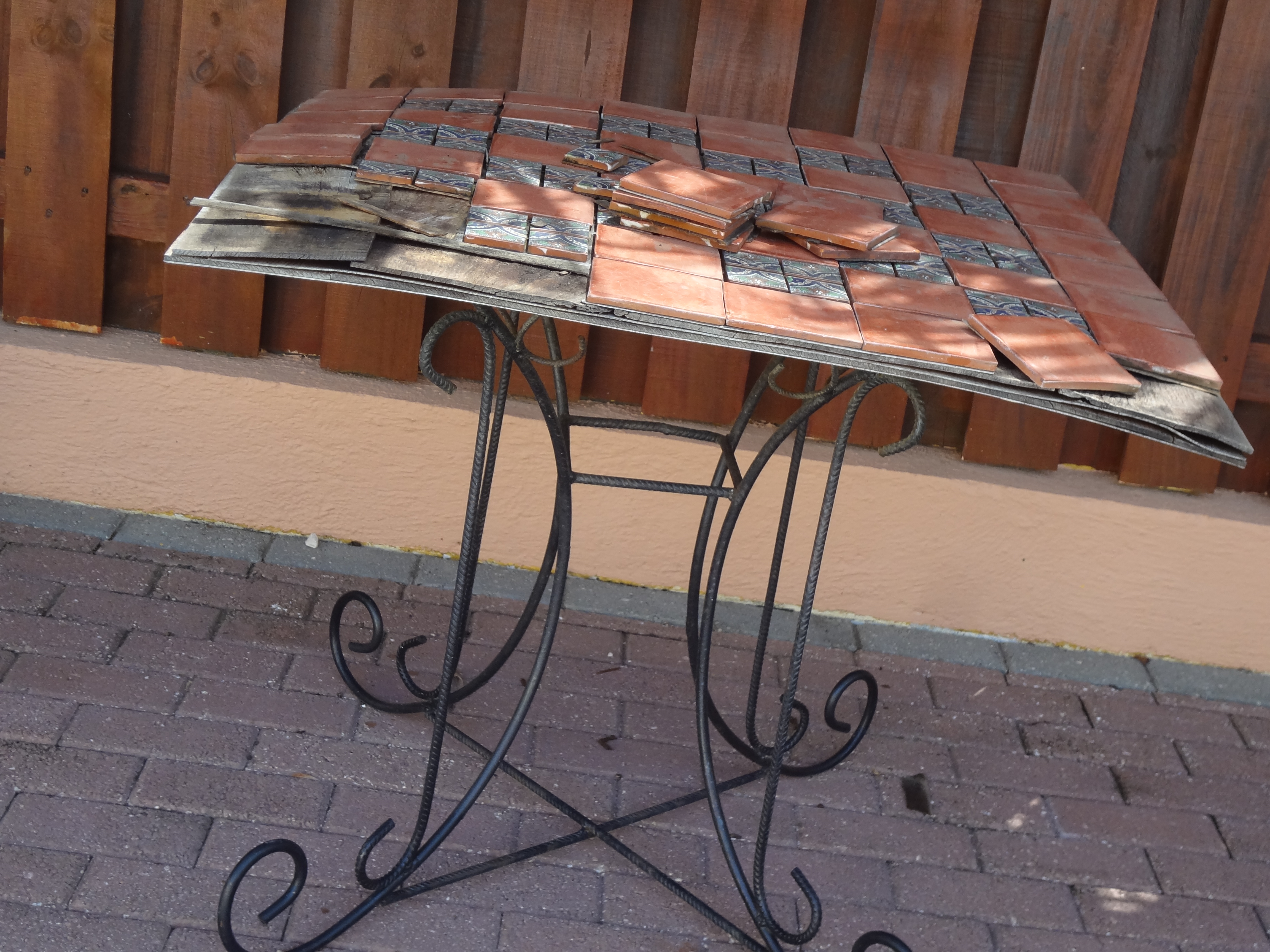 In between lots of laughs and an impressive amount of elbow grease by ALL (who is still exhausted today, ladies?) we took a tiled table disaster masterpiece from this: