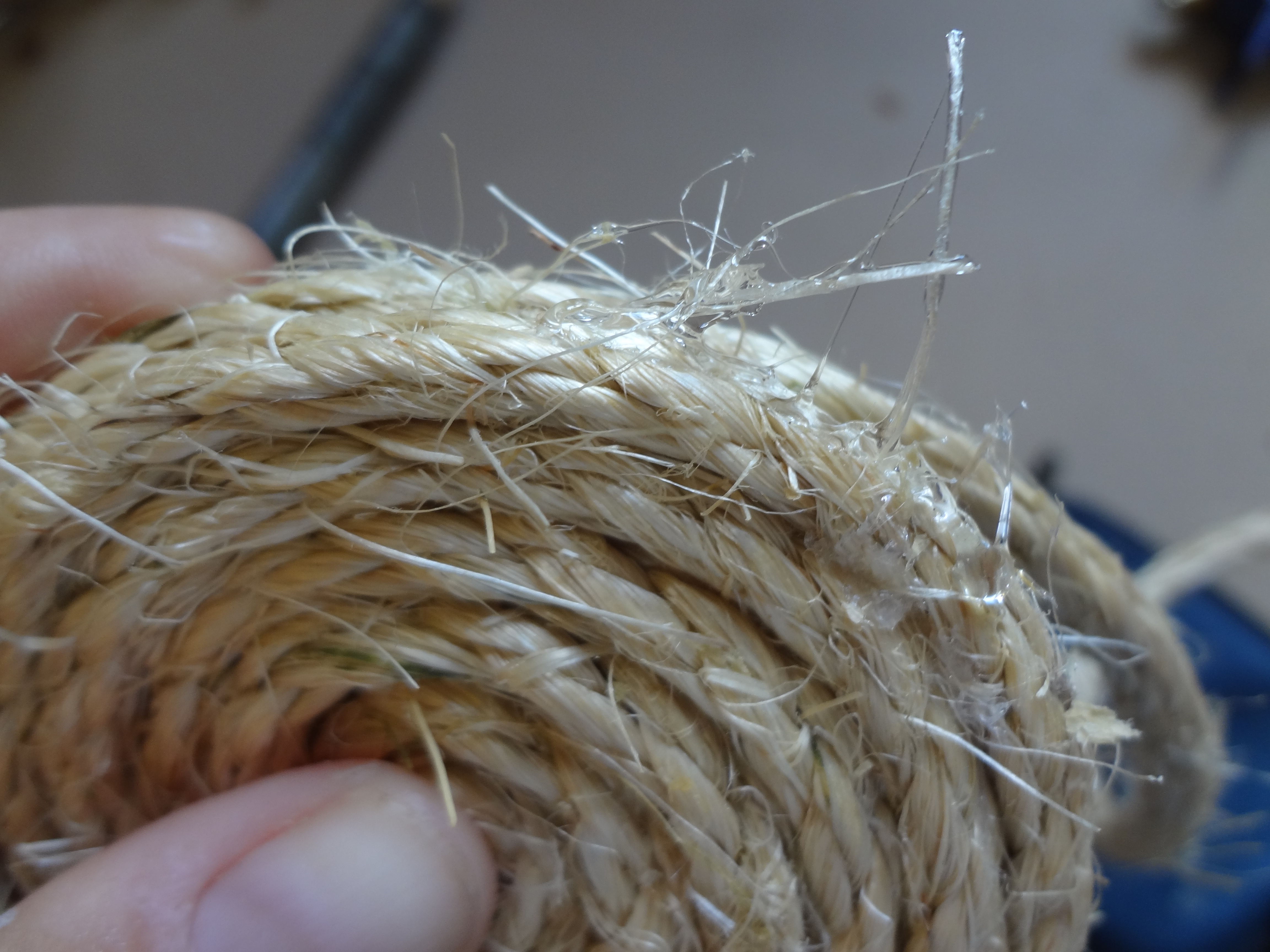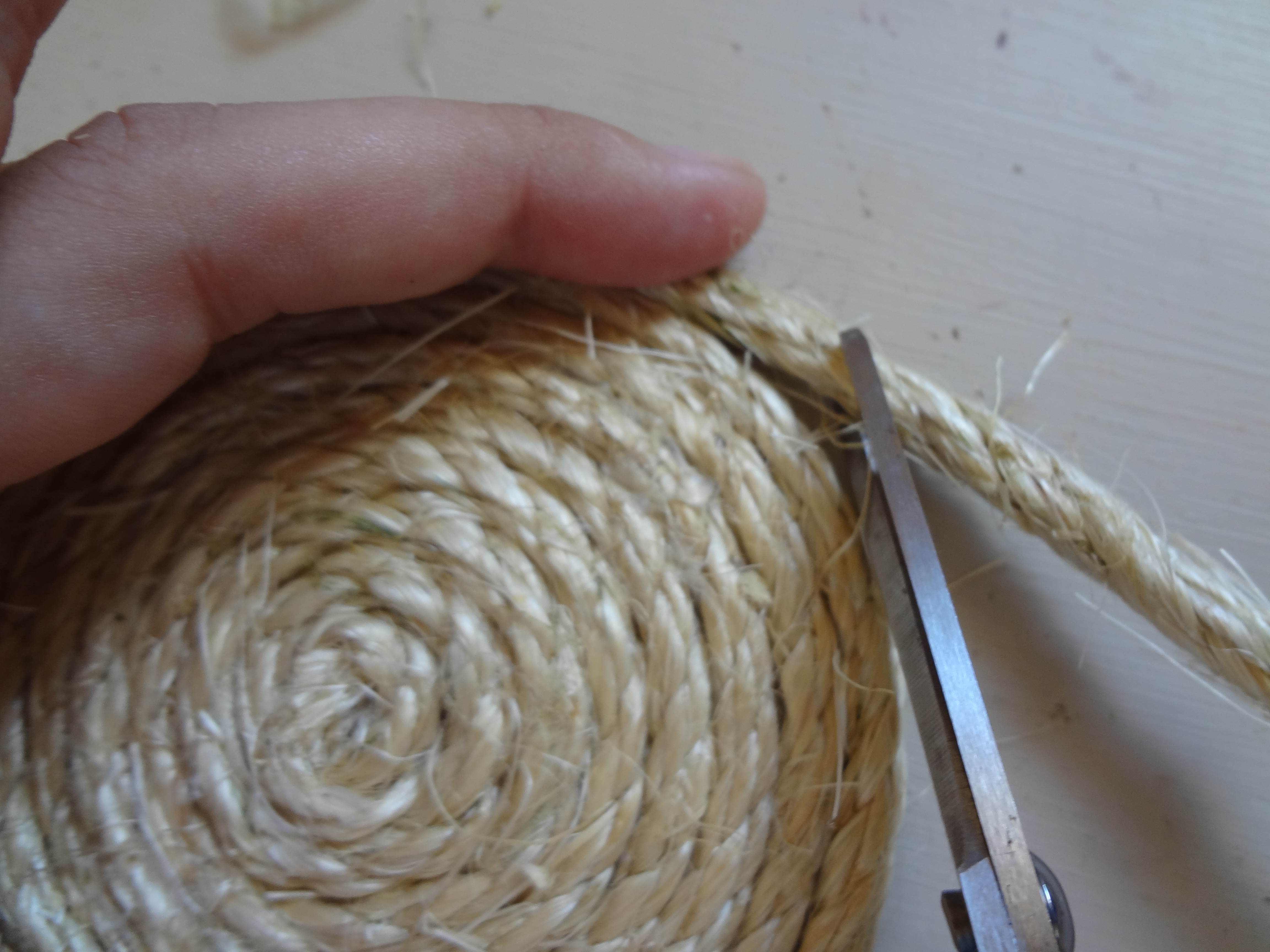 How to: put a dab of hot glue on the end of the sisal and start rolling, hot glue every so often and keep rolling.