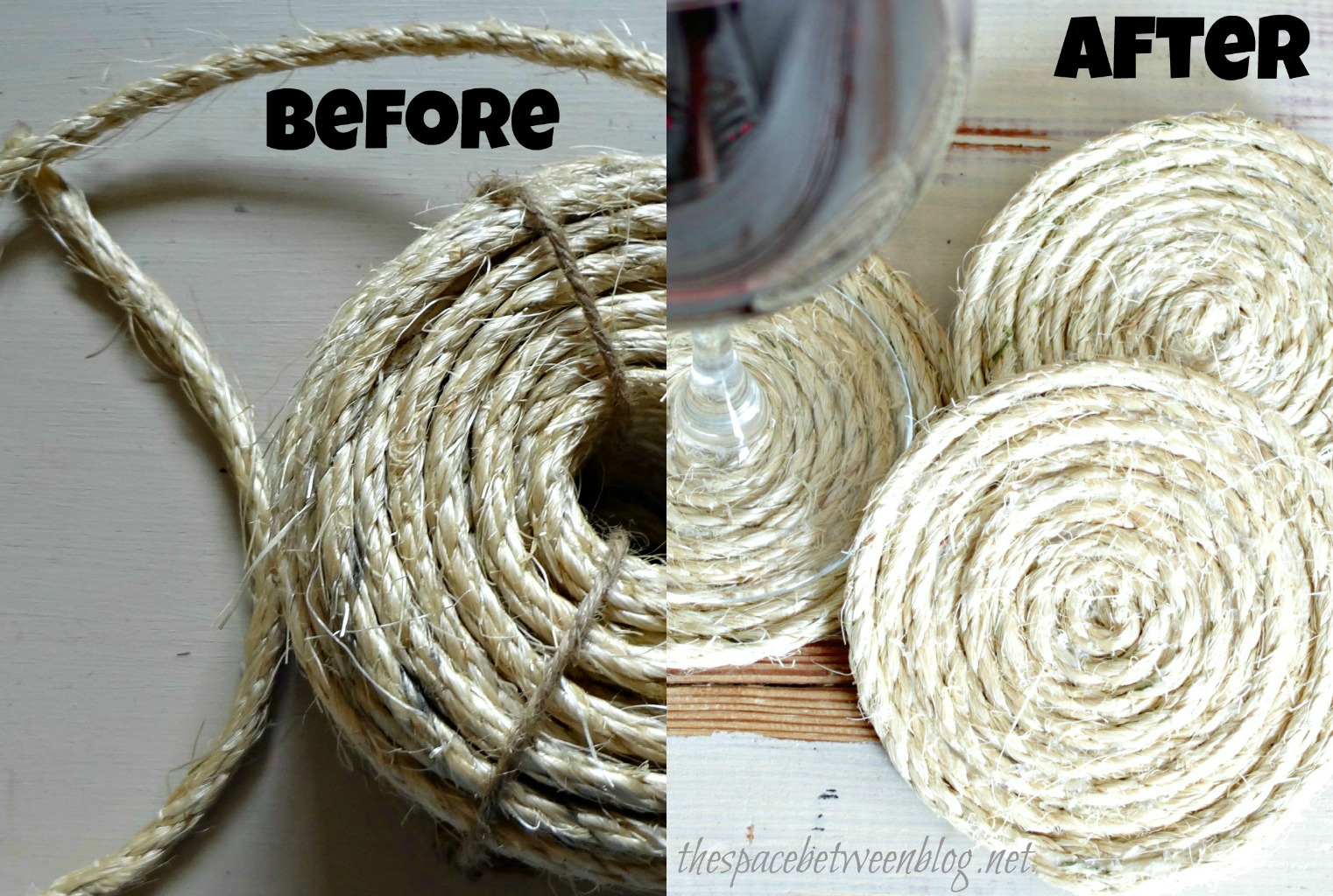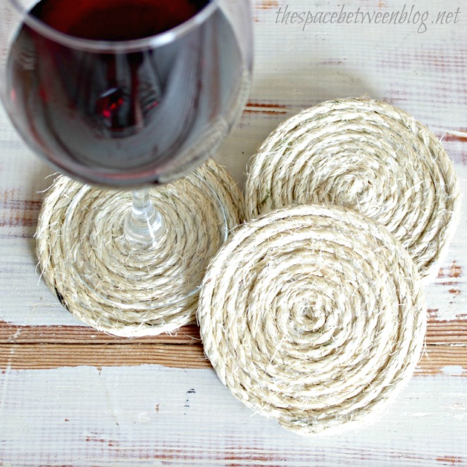 I love to give homemade gifts. Maybe too much. Only use stone coasters because any others I have tried just hold water on them and then drip off the glass when I pick it up to drink from it. I tried making some from wine corks like I had seen on a few blogs. Project FAIL. I love sisal but have never bought any for a project. Might be addicting… I’ve got scars on my legs from making projects with glue guns while sitting at my coffee table.