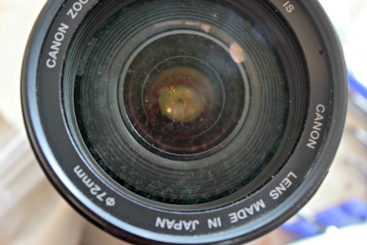 So we did a little googling, and some serious considering about taking the lens apart to try to clean it and potentially ruining it beyond repair. The lens is this one from Canon, so it’s not what I would consider an inexpensive lens. It is about 10 years old I would guess, but all of the other features still function perfectly other than the condensation issue.