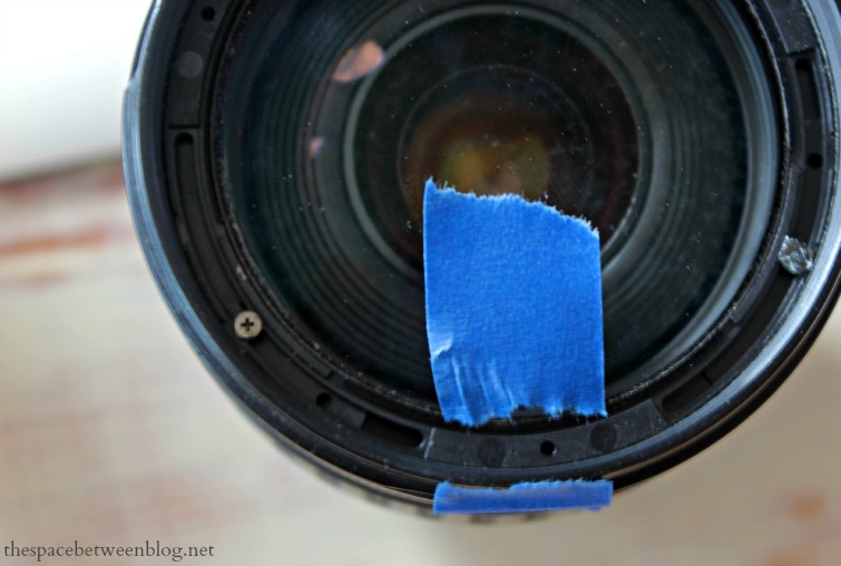 Step 2 – Use masking or painter’s tape to mark how the lens glass is lined up with the lens body.