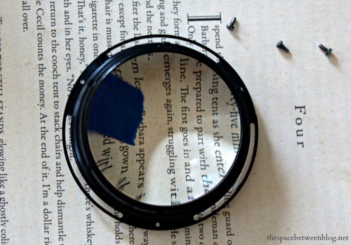 After the lens glass is thoroughly cleaned on the inside, carefully line up your tape pieces, set the lens glass back in the lens body and screw in the 3 small screws.