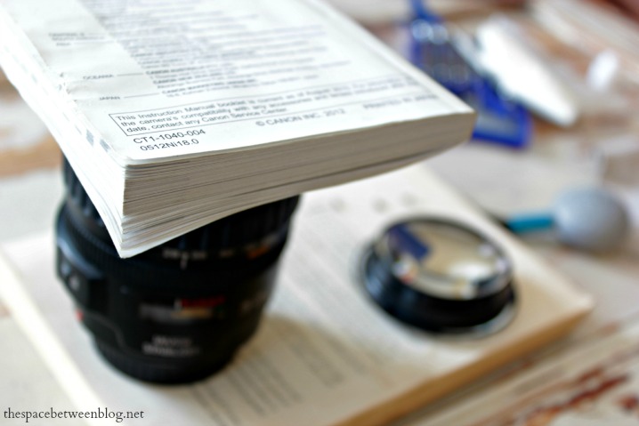 Then we covered the now exposed innards of the lens with another small book to prevent any dust from finding its way inside.