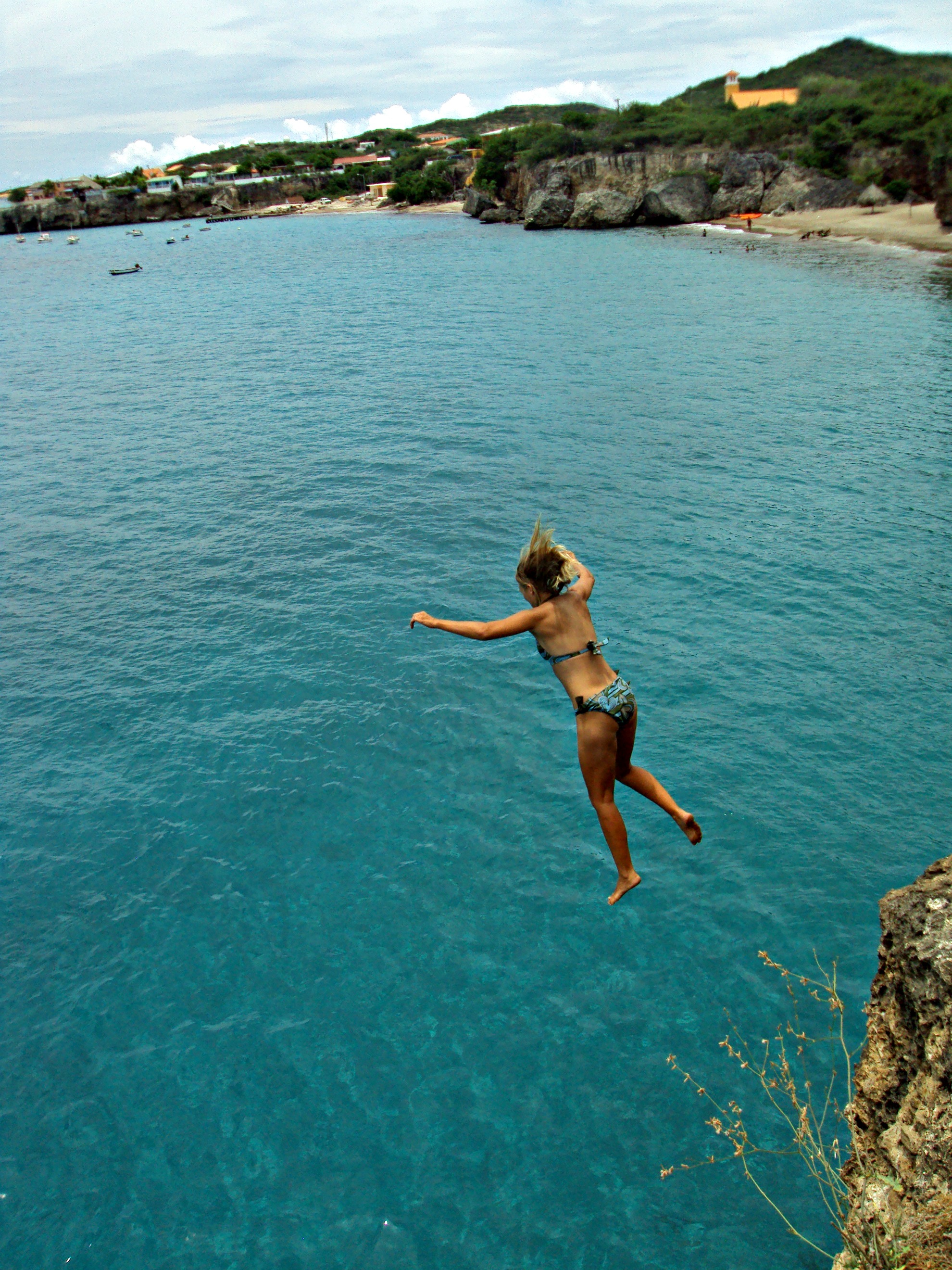 Hi Cindy! You will need a form of transportation to get to both, you can rent scooters or a rental car in town near the cruise port, or take a cab, but that could get pricey. Then you will follow road signs to Westpunt. Captain Good Life at Playa Santa Cruz will bring you to the Blue Room, is was $20 per person when we were living there. And the cliff jump is at Playa Forti, at the top (obviously) by the restaurant. 🙂 There is a guy who hangs out there and might appear like he wants money, but you can jump for free. I hope you love your time on Curacao!!