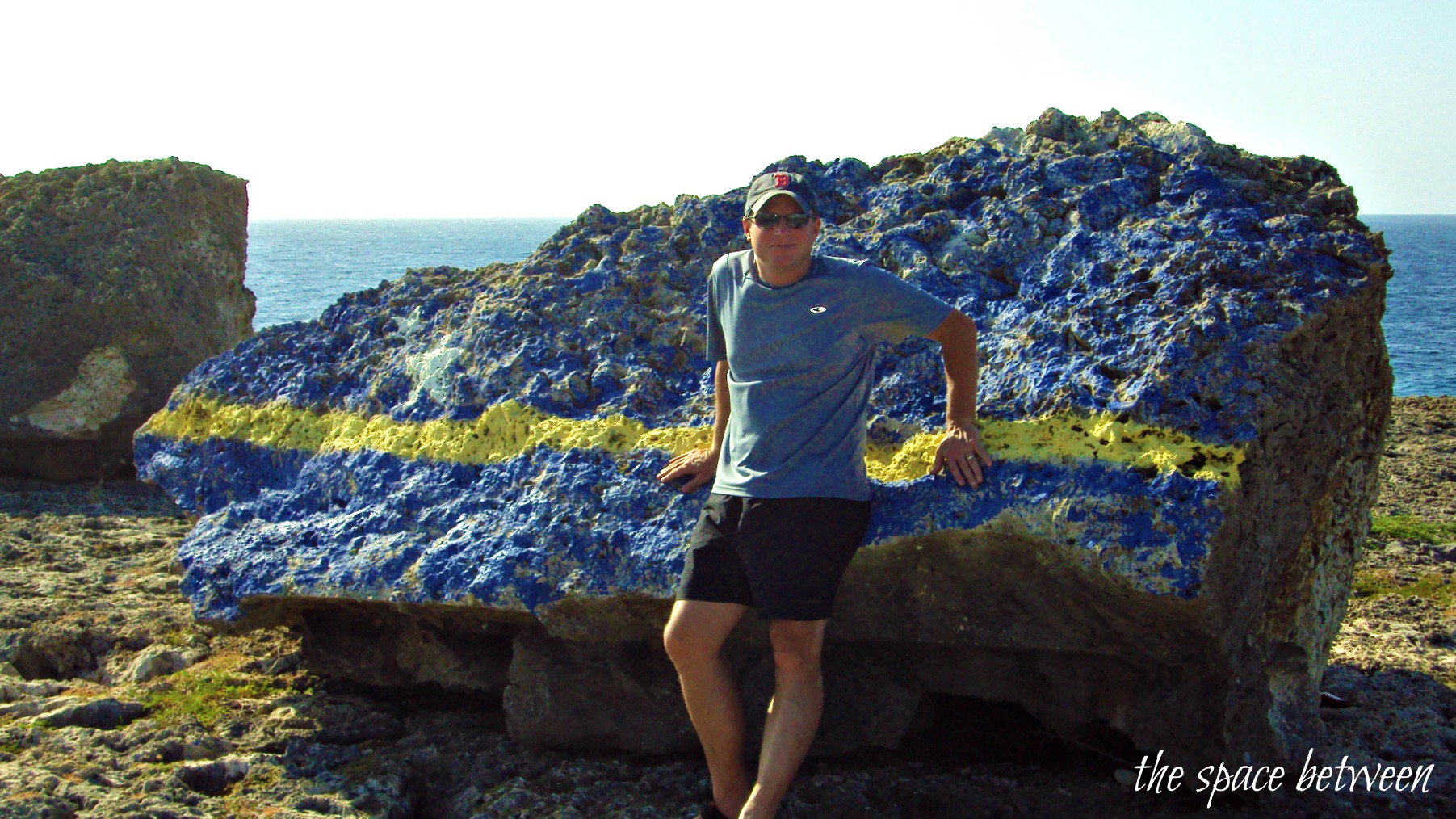 At the westernmost point of the island you can see first hand just how much of an impact that the powerful sea and wind has had at corroding away the island rock. Curacao is essentially made up of a coral reef that had formed over volcanic rock and turned into limestone over time. The weathering has created caves in spots and on the westernmost point of the island it is said that you can ‘hear the island breathe’. It is the sound of the crashing waves coming up under the island on that coastline. It is pretty cool. Oh, and there’s a rock painted like the Curacao flag and a cute husband, if you’re lucky. 😉