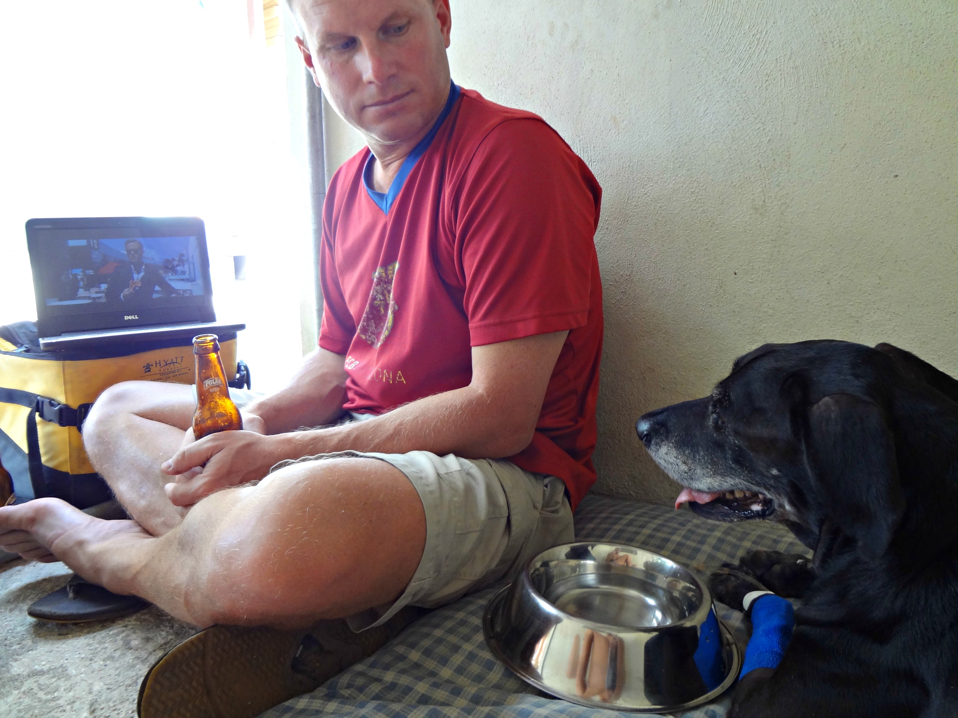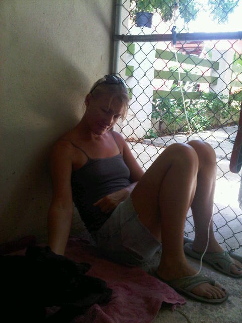 That’s Mico still hooked up to her iv post surgery, a daddy looking lovingly on with our cooler of beverages propping up our laptop playing the movie “Crazy Stupid Love”.