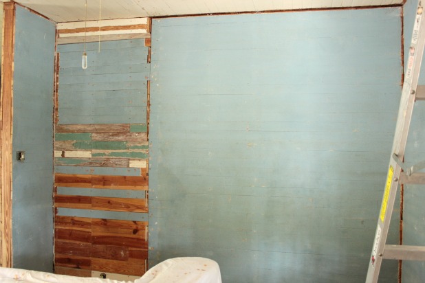 Because of it’s location in the room we had thought this would be a cool wall to strip down the Dade County Pine and create a cool accent wall … until we discovered part of it actually used to be a doorway and it wasn’t all Dade County Pine. Whomp whomp.