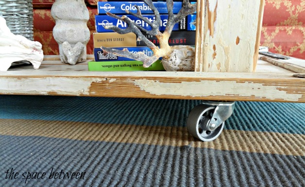 Once all 4 legs were attached, I just measured inside from the edge an inch and added the 4 casters lined up with each leg. Then flipped this whole contraption over … and here we are.