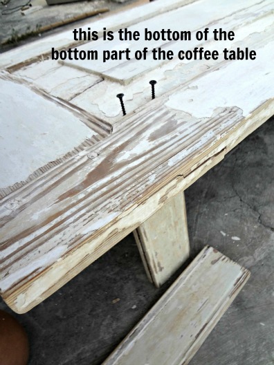 So, here is what the coffee table looked like once I had the 4 legs and casters attached to the bottom door panel of the coffee table.