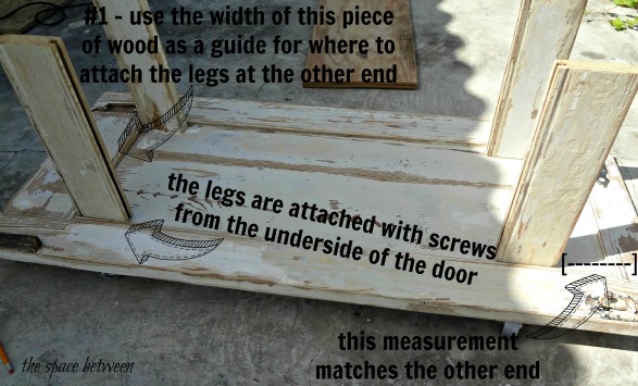 As with most projects, it’s just me around here, with my own two hands. I knew it would be a bit of a balancing act to try to get the 4 legs attached to the first part of the door. The pilot holes save my sanity. Seriously.