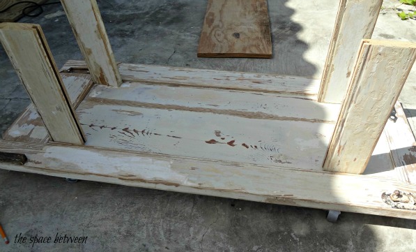 And, here you can see the before pics in all their glory and hear how I got it from a chipping mess to a sanded mess masterpiece. And here’s the story of my husband’s first reaction to the project.