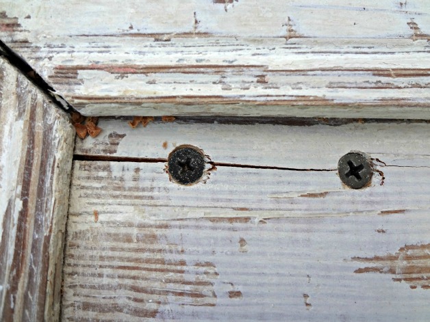 You can see them if you’re really looking, but they fit right in on the decrepit old door coffee table and haven’t bothered me one bit. Two points if you noticed. 🙂