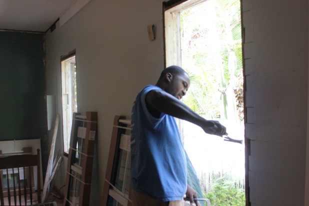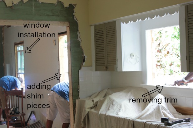 And just for a quick run down of what we did to prepare. Also known as “what we asked to do ourselves to save a little dough”. There really wasn’t much because the old style of window we had, called a jalousie, was installed inside the window opening so there was no need to remove any trim, I just went around unscrewing the windows from the trim.