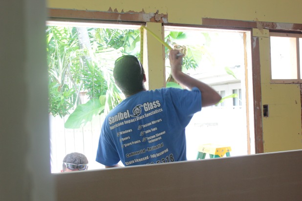 A few hours one afternoon was all it took for Joel and I to unscrew all of the windows so the guys could just slide them out. In the dining room we had to remove a window AC unit that left a huge hole so we just went ahead and removed those windows a few days in advance.