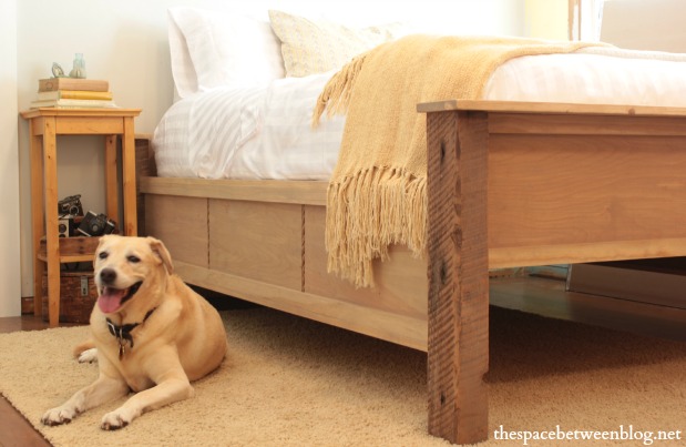 So even though Joel was willing to indulge me in my desire to make a bed frame for the guest bedroom (not his idea of a necessary project right now) he was adamant that I make sure to protect the shiny new floors.