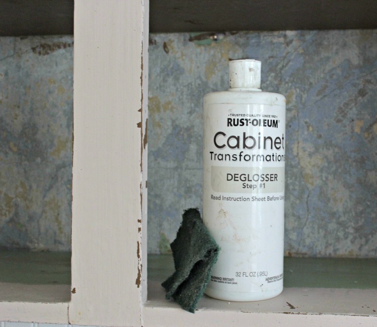 Step #2 – Degloss. The deglosser and scrubbing pads are provided with the kit and this step is more elbow grease than anything. If I’ve learned one thing over our many years of DIY … spend the extra time on a good prep job to save you from the headaches of needing to redo the whole job.