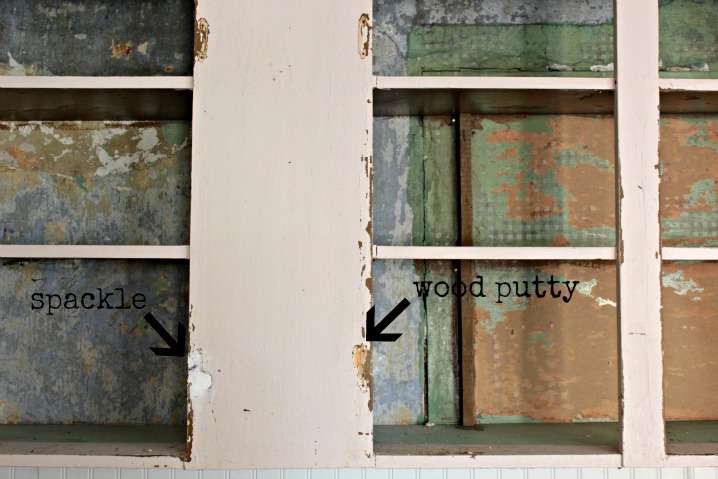 Money Saving Tip!!! We use a combination of spackle and wood putty for filling the holes. Spackle is much cheaper so we fill the hole with spackle and just do a top coat with the wood putty. If you’re not going to be washing the surface before you paint you can skip the putty all together … but spackle will wipe right away with a damp cloth.