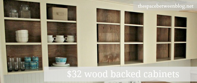 open cabinets with wood backingHow’s that for a $32 upgrade? Have you spent $32 on anything recently that’s made a huge difference in your house?