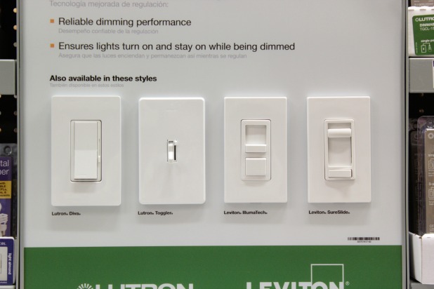 That’s a lie. We opted for the second one from the left in the picture above because our switches are going in a box with two other switches so we needed the switch to be compatible with our switch plate covers.