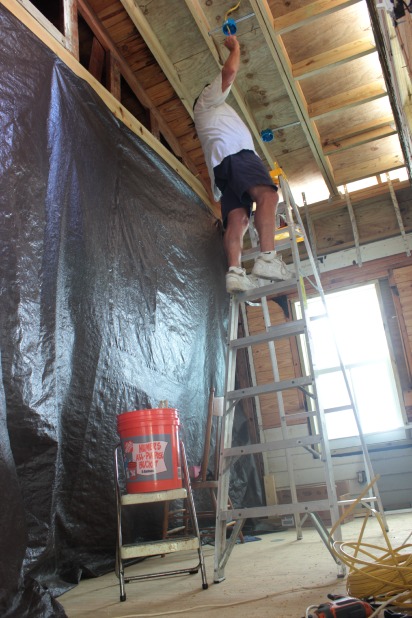 Unfortunately, since we haven’t had our framing inspection yet we can’t install the wood slats on our vaulted ceiling which means we’re not quite ready to install the lighting, but we went ahead with the running of the new electric lines and placement of the light switches.