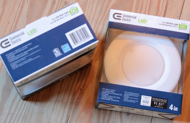 And we’ve heard from friends and family with recessed lights how quickly regular recessed lights burn out. We figure the few extra dollars spent on LED lights minus the savings on our energy bill multiplied by the fact that I won’t need to be hauling out the tall ladder every other month to switch them out equals happy dogs shopping at The Home Depot.*