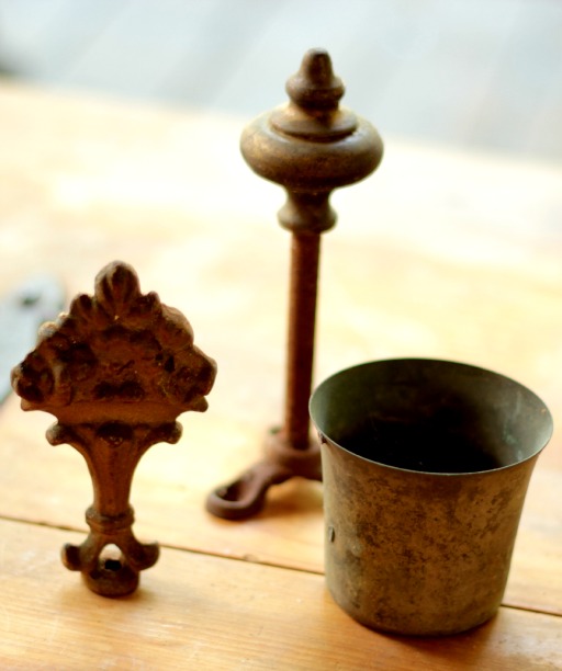 Pretty cool, right?!?! Any idea what that last thing is? I think the rusty tools are cobbler’s tools, maybe?!? To go with the shoe forms? Whatever they are, they are sure to find themselves moved from shelf to shelf and made right at home around here in their old home.