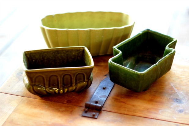 Karen have you thought of maybe taking a metal detector to your backyard or around your house. lol. Just think what you might find a bit under the dirt. Can’t wait to see what your treasures become. McCoy sounds right for your vintage planters or maybe USA. There are a few unmarked McCoys out there, but more USA’s