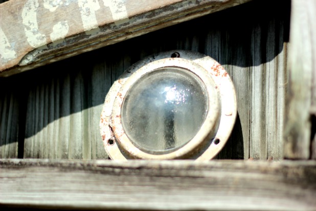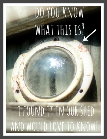 Due to it being old, it can not be what my first thought was, but I’ll tell you what it reminded me of, one can buy these little round glass thingies {looks almost exactly like yours!} to install into your fencing – it is for your dogs to look through! Crazy but true !