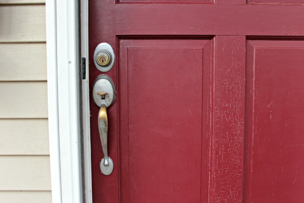 Yep, I was painting hardware before painting hardware was cool. And I love a good crackle paint finish, but not really on a front door. The last time I updated the look of that door was probably 6 or more years ago.