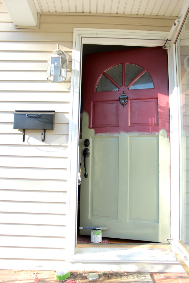 I really was just going to repaint her a similar shade … I really like the look of a dark red front door. And why complicate things. Because I can.