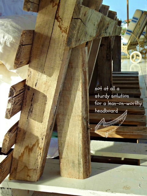 Oh, yeah, and then we have what is supposed to be the ‘headboard’ for the bed. There was actually cutting and nailing and measuring involved. There was also a bunch of wind and a few curse words and the need to totally re-evaluate what to do with the headboard.