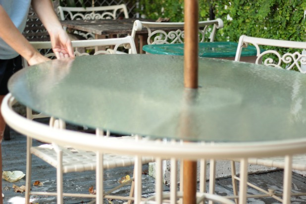 patio cleaning with p&g cleaning productsNobody puts patio furniture in a corner!