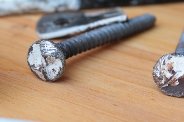 We first realized the screws looked like this … see how you can easily screw them in but there is nothing for the drill bit to grab onto if you’re turning counter-clockwise.
