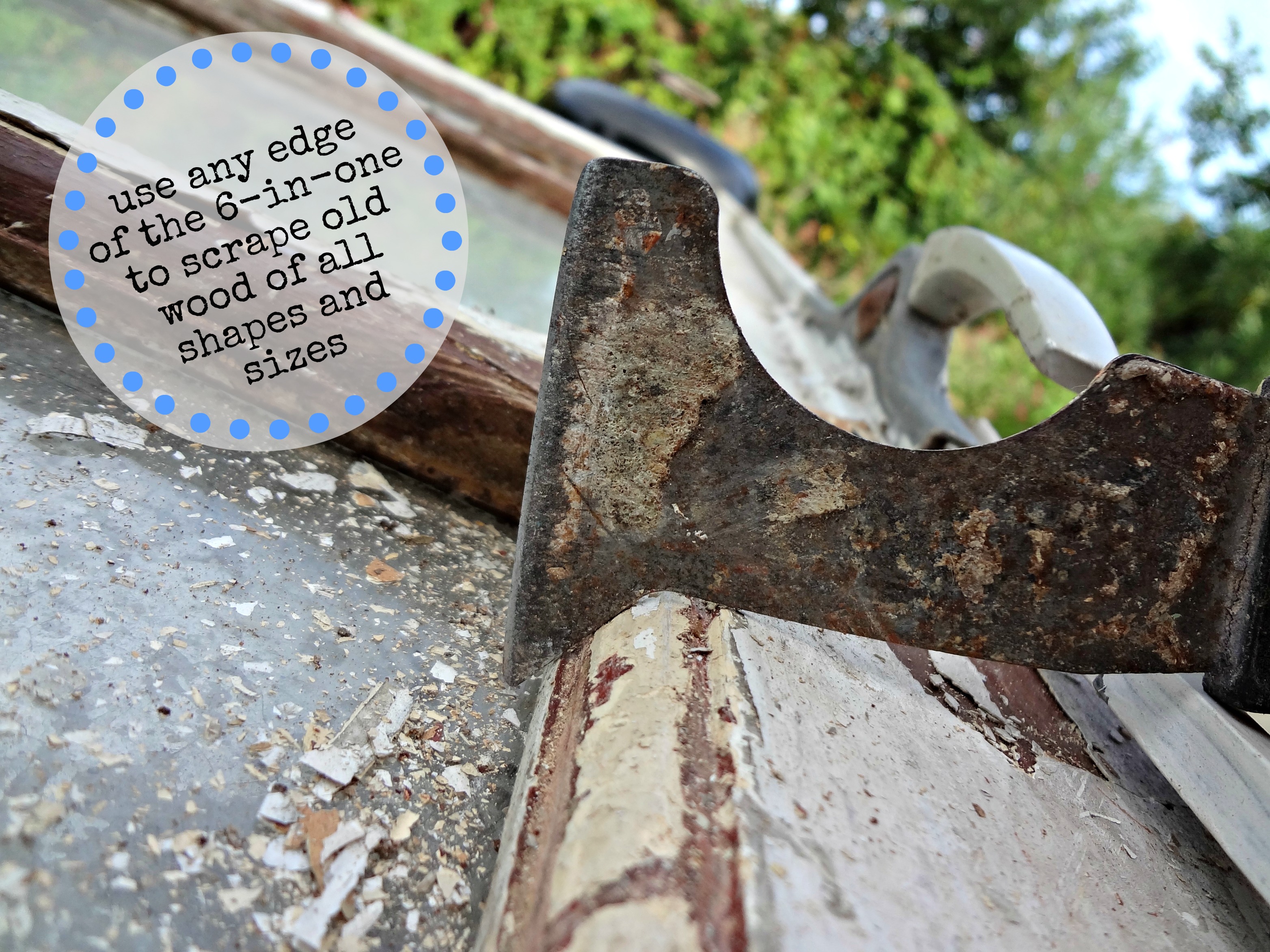 As far as any type of scraping goes, my absolute favorite tool for this step is the 6-in-One. With all of the different angles of the blade, you can work in any detail, corner, nook, cranny, and crevice. 🙂