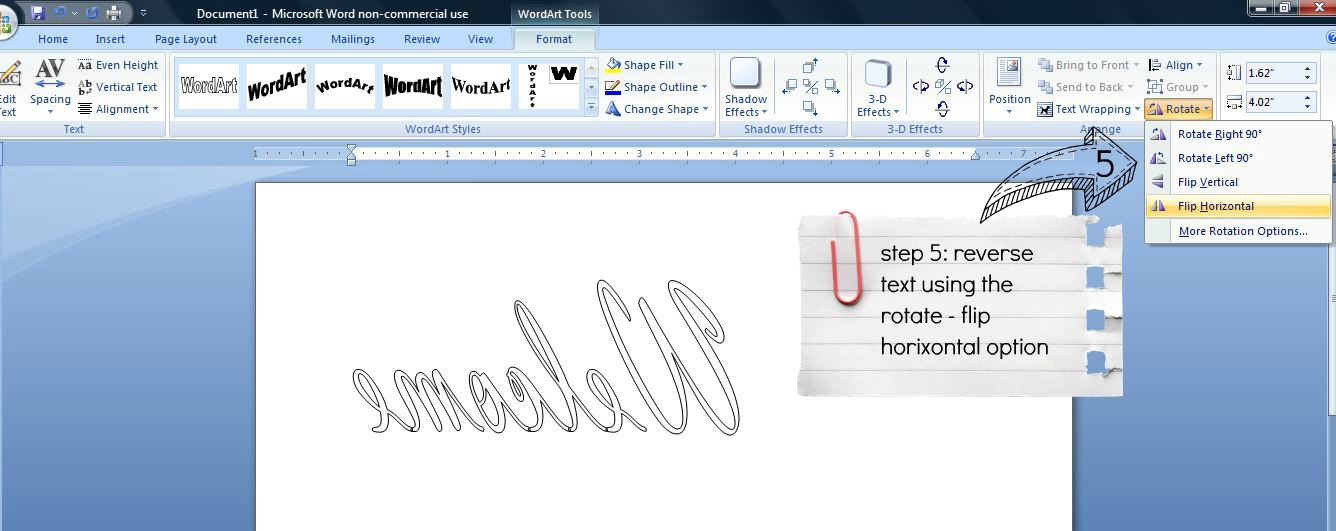 And, since I had to figure out a couple of the steps in our Microsoft Word 2007 ’cause we’ve totally got the latest and greatest technology, here is the step-by-step tutorial to make a reverse image for my your future reference. 😉