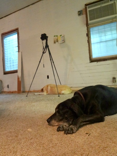 This picture is not from this project (hello there berber carpet from before the time of asbestos tiles and hardwood floor refinishing) but just proof that Marley does, in fact, find security under the camera tripod. #lovethosedogs