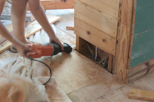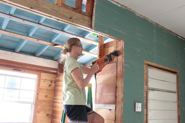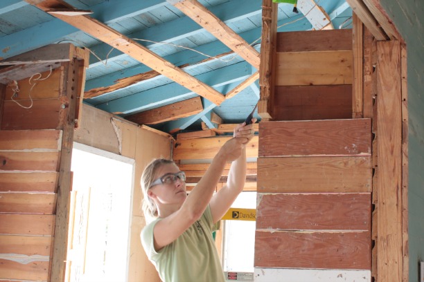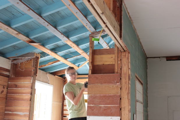 Each section took basically the same steps (I feel like I said that already). For the wall on the right I could just run the sawzall between the wall to come down and the wall it was nailed into to cut through all of the nails.