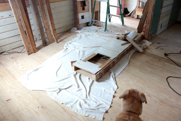 That shaded rectangle area is gone now too. Sorry I didn’t get a good picture of that, it’s actually really dark in there now because we have even the window openings covered in plywood until our new windows come next week.